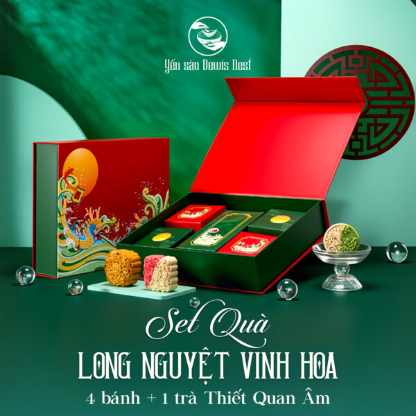 Hộp Quà Trung Thu Long Nguyệt Vinh Hoa – 4 Bánh -1 Trà Thiết Quan Âm